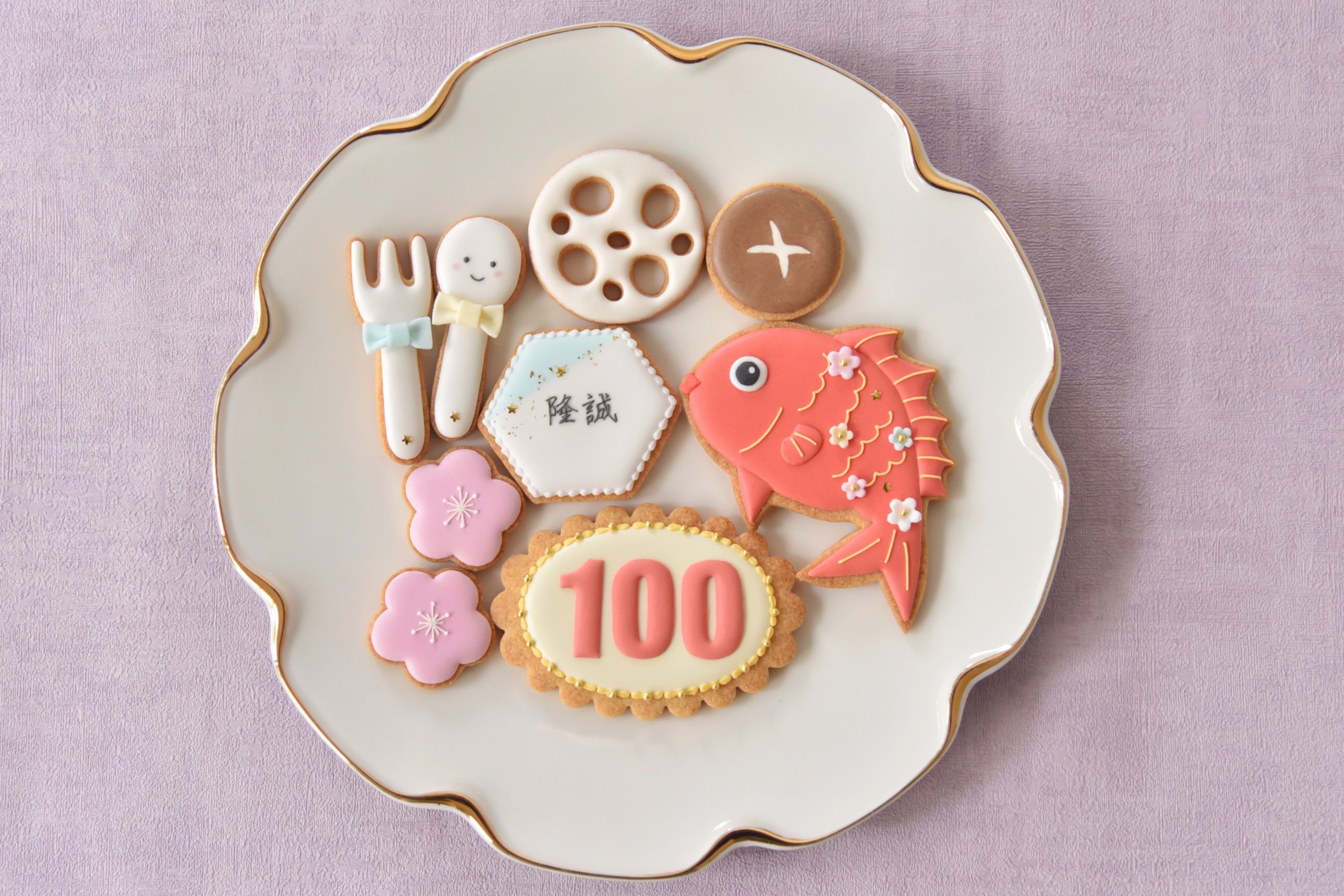 百日祝いのアイシングクッキーをお作りさせていただきました。