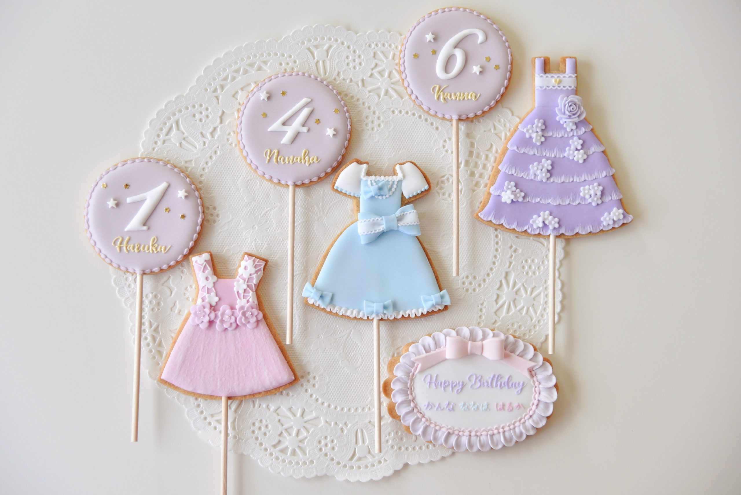 3姉妹のお誕生日ケーキに飾るアイシングクッキーをご注文いただきました。
